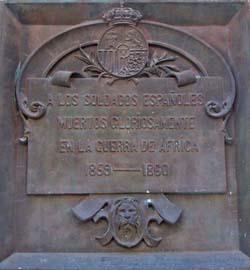 Este monumento situado en el centro de la Plaza de África se erigió en honor a los soldados españoles caídos en la Guerra de África de 1859-1860, durante el reinado de Isabel II.
