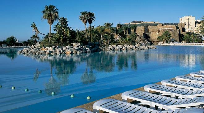 El Parque Marítimo del Mediterráneo es la obra póstuma de César Manrique. Se comenzó en 1992 finalizándose dos años más tarde. Tiene características similares a las del lago Martiánez del Puerto de la Cruz. El parque ocupa una superficie de unos 56.000 m2 y alberga lagos de agua salada, solariums, jardines e instalaciones de servicios. En el centro del mismo destaca un castillo inspirado en las murallas de Ceuta. Acoge un casino, un restaurante y una discoteca. Junto al Parque Marítimo está ubicado un puerto deportivo.