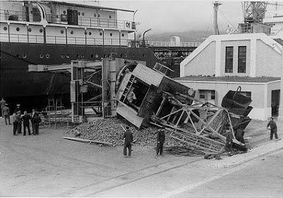 ACCIDENTE CON UNA GRUA EN EL PUERTO DE CEUTA AÑOS 50