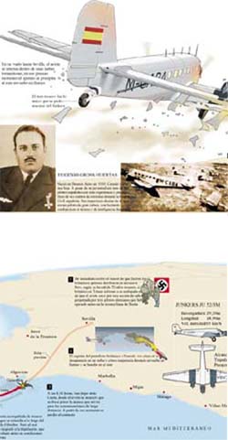 Pero, ¿qué interés podrían tener los alemanes en impedir que ese vuelo llegara a su destino? Cuando en plena Guerra Civil, en agosto de 1937, la compañía Iberia reanudó sus vuelos en España, los aviones y tripulaciones eran alemanas. En ese momento, Iberia era propiedad de la aerolínea germana Lufthansa, que había comprado todas las acciones al empresario Horacio Echevarrieta. Esta situación se mantuvo hasta el final de la contienda. No fue hasta el mes de septiembre de 1939 cuando el Gobierno español decidió reorganizar el transporte civil y relevar a las tripulaciones alemanas por pilotos españoles procedentes del Ejército. Esta decisión no cayó bien entre los alemanes. El momento no era el más oportuno para sus intereses. Coincidía prácticamente con el inicio de la Segunda Guerra Mundial y la línea Tetuán-Sevilla era la atalaya ideal para observar, con pocos riesgos, los movimientos de la marina inglesa en el Estrecho de Gibraltar.
