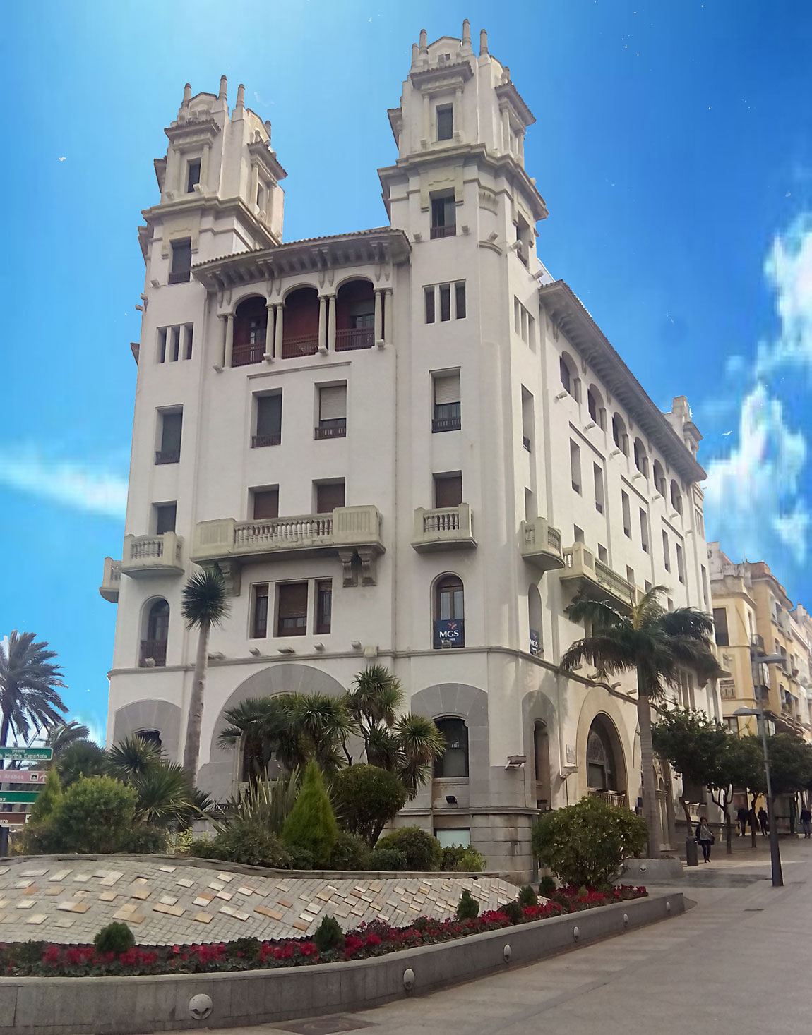 Descripción: La popular Casa Trujillo recibe su nombre del de la familia que ordenó su construcción. Comenzada la edificación en 1925, se inauguran sus primeras dependencias "el Centro Hijos de Ceuta", en 1928.Fue levantada, siguiendo los diseños del arquitecto balear Andrés Galmés Nadal, sobre el solar que ocupaba la antigua Pescadería, singular construcción de planta circular del siglo XIX. La nueva edificación está inspirada en los edificios neobarrocos de corte historicista, puestos de moda en las grandes vías españolas, destaca por su potencia que aumenta su ubicación en chaflán. En su interior destaca la magnífica escalera de caracol con una importante labor de estuco realizada por Cándido Mata. Nivel 2 de protección en el Plan General de Ordenación Urbana de 1992 (Titulo X). (Fuente: Ceuta Cultural. Dirección Prov. Ministerio de Cultura).....http://web.ceuta.es/